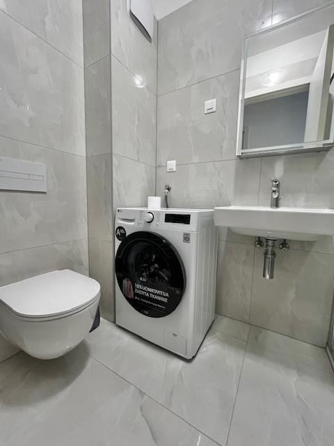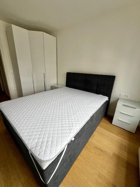 Prvi najam. Eklskluzivna zgrada najvise kvalitete gradnje. Stan ima 60m2, dvije sobe, kuhinja, dnevni boravak, kupaona, toalet za goste, loggia. Stan je opremljen novim namjestajem i novim aparatima pod garancijom. Klima u svakoj sobi. Elektropodizne rolete. Videportafon. Protuptovalna vrata. Perilica sudja i rublja. Kuhinja komplet opremljena. Stolarija aluminij - drvo. Vrhunska izolacija. Stanu pripada garazno parkirno mjesto. Za samca, par ili eventualno par s manjim djetetom. Iskljucivo ozbiljne ponude i dugorocan najam.