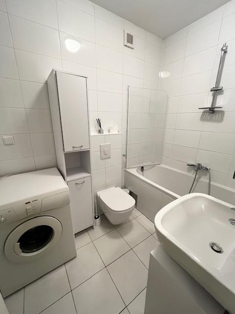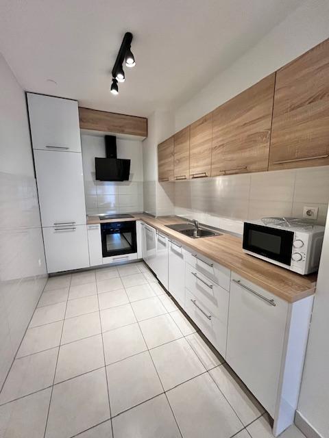 Moderno opremljen stan u novogradnji na Ferenscici u novom naselju. Stan se nalazi na visokom prizemlju. Velicine 50m2. Sastoji se od: dnevnog boravka povezanog s modernkm, opremljenom kuhinjom i izlazom na loggiu velicine 11m2, hodnika s ugradbenim ormarom, kupaone i velike spavace sobe podijeljene na spavaci i radni dio. Stan je opremljen svim potrebnim aparatima: perilica sudja, frizider s dubokim zamrzavanjem, mikrovalna, perilica rublja. Klimatiziran je i ima protuprovalna vrata. Vlastito brojilo grijanja, vode i struje. Rezije su niske. Parking pred i oko objekta u besplatnoj parkirnoj zoni. Blizina velikog Konzuma, Bipe, Lidla. Lokacija je sjajno povezana s centrom grada, kao i izlazom iz grada preko autoceste. Stan je predvidjen za par ili samca. Iskljucivo ozbiljne ponude i dugorocan najam.