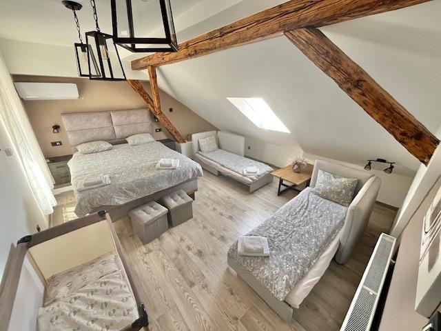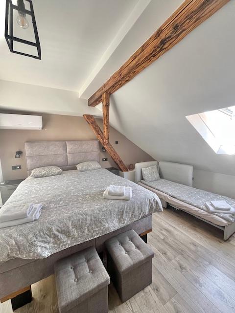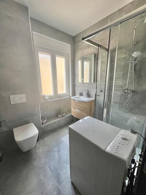 Novouredjeni stan na atraktivnoj lokaciji, velicine 79,60m2. Nalazi se na 4.katu s novim liftom u uredjenoj zgradi. Sve instalacije su nove. Novi podovi, keramika, sanitarije, stolarija. Stan je podijeljen na manji i veci studio apartman. Jedan se sastoji od velike sobe, kuhinje i kupaone. Drugi se sastoji od velike sobe, manjeg radnog i garderobnog prostora, kuhinje s blagovaonom i kupaone. Stan ima ostavu. Kuhinje i kupaone su nove. Potencijalni kupac stan moze uz manje preinake koristiti kao jednu cjelinu, ili postojeci stan kao dvije manje cjeline. Takodjer, moguce je stan davati u kratkorocni/dugorocni najam, u kojem slucaju nisu potrebne dodatne investicije. Potpuni mir, bez buke. Klimatizirano, videonadzor, protuprovalna vrata. Vlastito brojilo struje, vode i plina. Vlasnistvo uredno, 1/1, bez tereta. Blizina Trga bana Jelacica, placa i svih potrebnih sadrzaja. Mogucnost povlastene stanarske karte u garazi na Langovom trgu. Iskljucivo ozbiljne ponude.